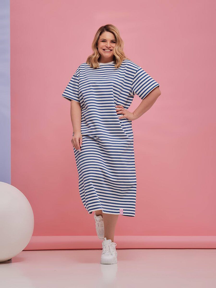 Полоска — классика, вне времени и стилей! Хлопковое платье в идеальной длине миди подойдет для любого типа фигуры и станет воплощением