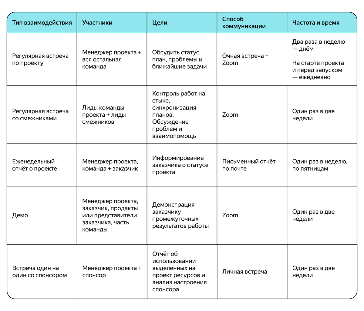 3. Ежемесячно: Демо-презентация для клиента Шаблон таблицы коммуникаций: Пример для Agile-команды: Понедельник: Планирование спринта (Zoom)