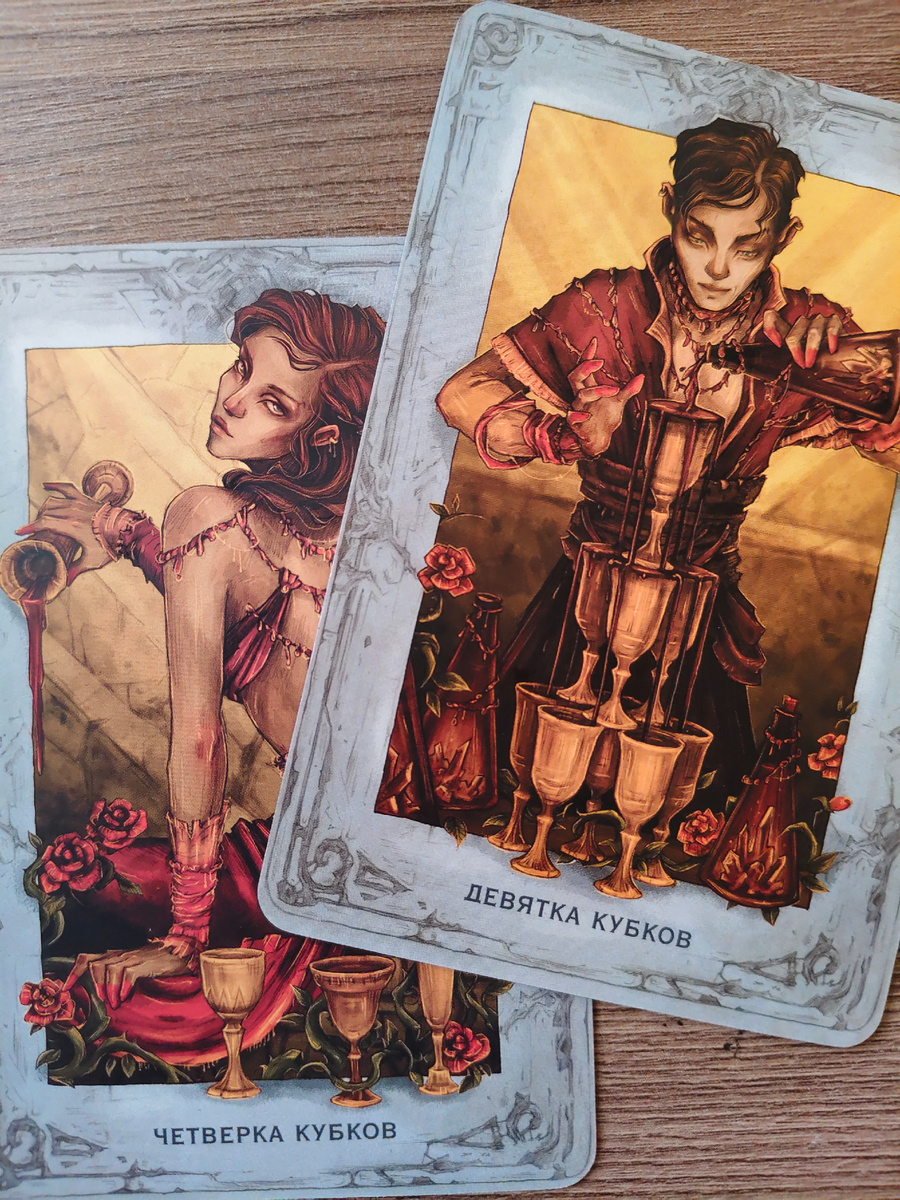 Четверка Кубков и Девятка Кубков в Таро – это сочетание карт, которое несет в себе как потенциал удовлетворения, так и риск застоя. Рассмотрим их взаимодействие в различных сферах жизни. Работа: В профессиональной сфере такое сочетание может указывать на период, когда вы достигли определенного успеха (Девятка Кубков), но испытываете апатию и потерю интереса к текущей работе (Четверка Кубков). Это может быть время для переоценки целей и поиска новых вызовов. Возможно, пришло время использовать накопленный опыт и ресурсы для поиска более вдохновляющей работы. Личное: В личной жизни это сочетание может говорить о том, что вы окружены вниманием и заботой (Девятка Кубков), но не чувствуете себя по-настоящему счастливым или удовлетворенным (Четверка Кубков). Возможно, вы закрыты для новых отношений или не цените то, что имеете. Важно открыть свое сердце и быть восприимчивым к чувствам других людей. Финансы: В финансовой сфере это может означать, что вы находитесь в стабильном положении (Дев