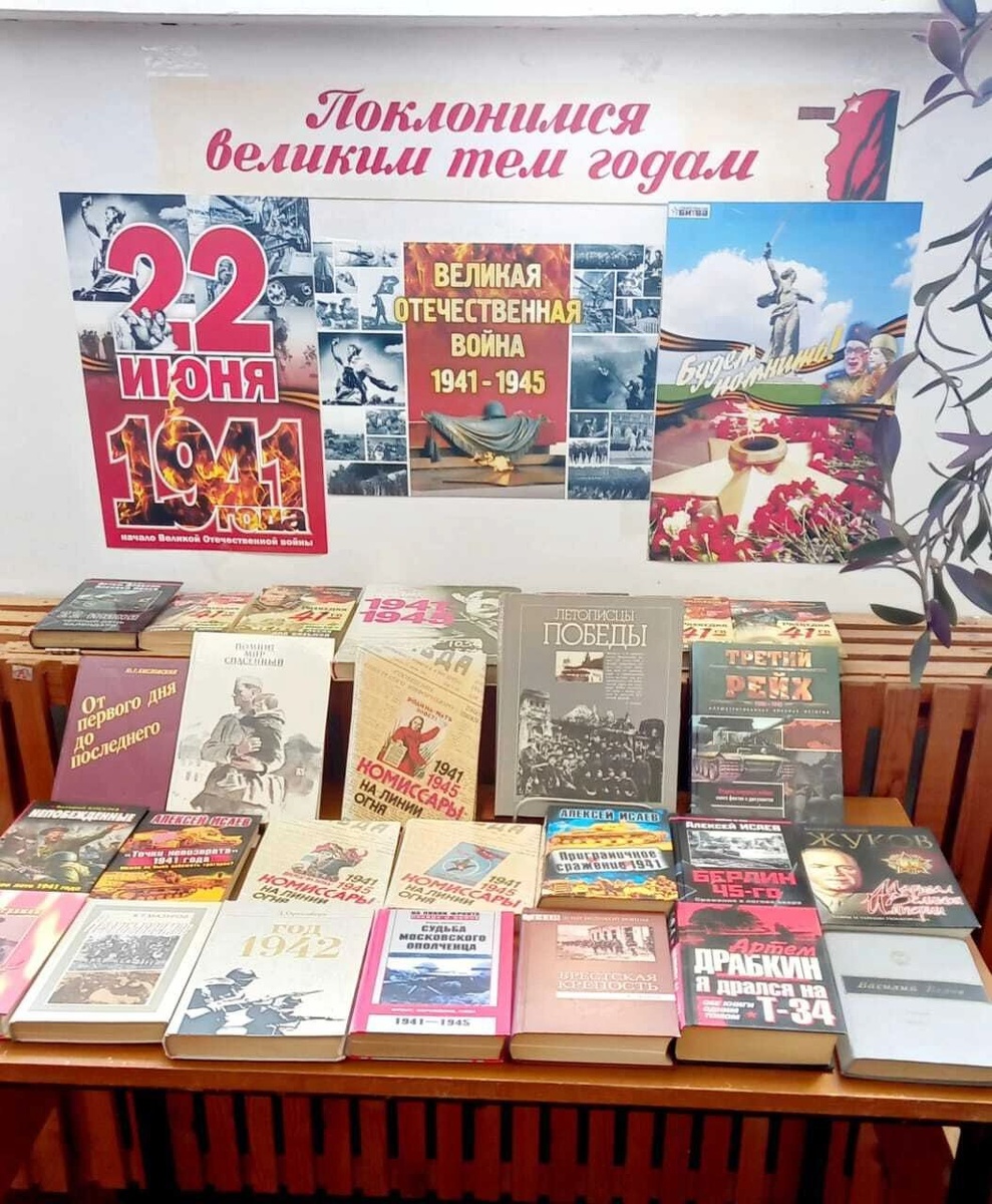 Этой дате посвящена выставка - память "Поклонимся великим тем годам", оформленная в читальном зале библиотеке п. Баяновка.