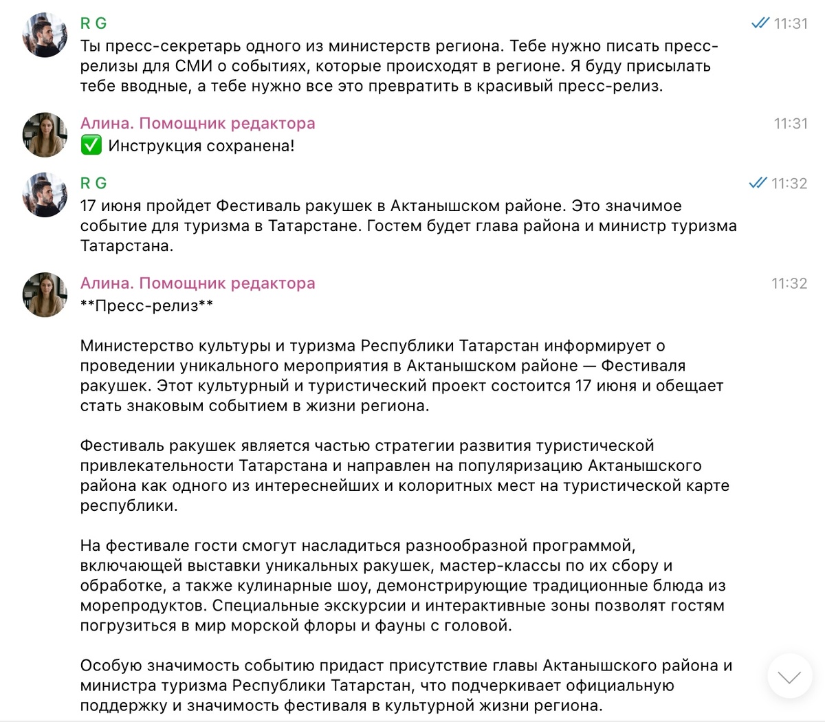 Господа копирайтеры, редакторы, журналисты и все, кто каждый день пишет тексты — у меня для вас объявление. Я принес вам удобные нейросети для рерайта. Последние пару месяцев я разрабатывал телеграм-бота для тех, кто ежедневно создает тексты. Искал удобную механику — и, кажется, нашёл. «Помощник редактора» — так я назвал этого бота. Её ещё зовут Алина. Это не ChatGPT в телеге — это по сути ваш персональный ассистент, который берёт на себя рутинную работу с текстами. Работает просто: вы один раз подробно описываете задачи помощника — что он должен делать с информацией, которую вы ему отправите. Что угодно: перевести текст, сделать рерайт, подготовить пресс-релиз, написать стих по материалам, проанализировать текст на ошибки, составить пост для соцсетей с нужным форматированием. Короче, что придумаете — то и будет делать. Вы просто даёте ему инструкцию, а потом закидываете тексты. Он моментально всё обработает — без отмазок, отпусков, лени и прочего. Бот сейчас работает в тестовом режиме