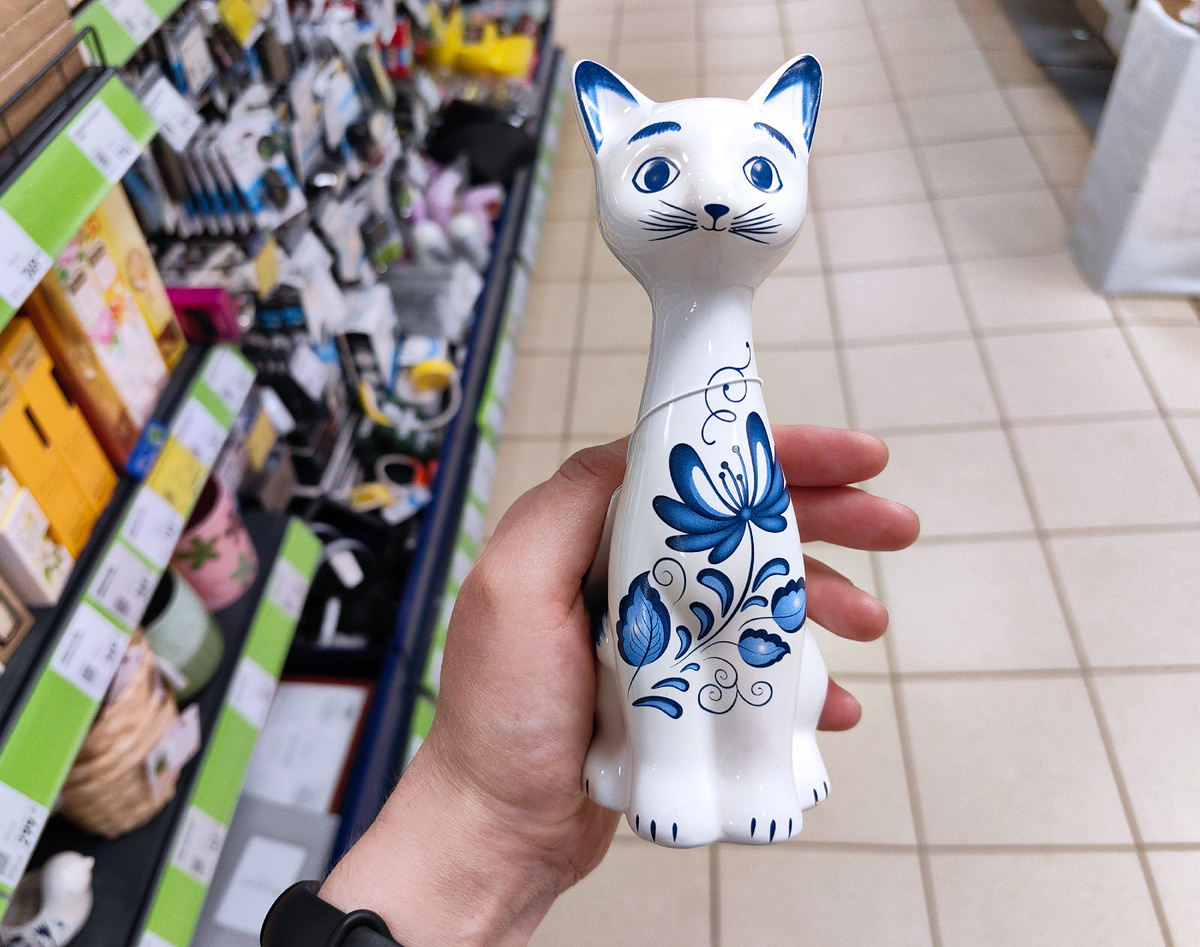 Всем здравствуйте! Как удачно сходила в Фикс Прайс, новинки самые последние, от котиков до посуды, разные. Только посмотрите, какую красоту привезли! Это новая коллекция Fix price, её еще и в каталог не добавили, а к нам уже привезли. Первыми появились предметы для декора, такой замечательный котик. Объединяет коллекцию один стиль, узнаваемый, котик словно прибыл из местечка Гжель, раскрашен в стиле этой народной росписи.