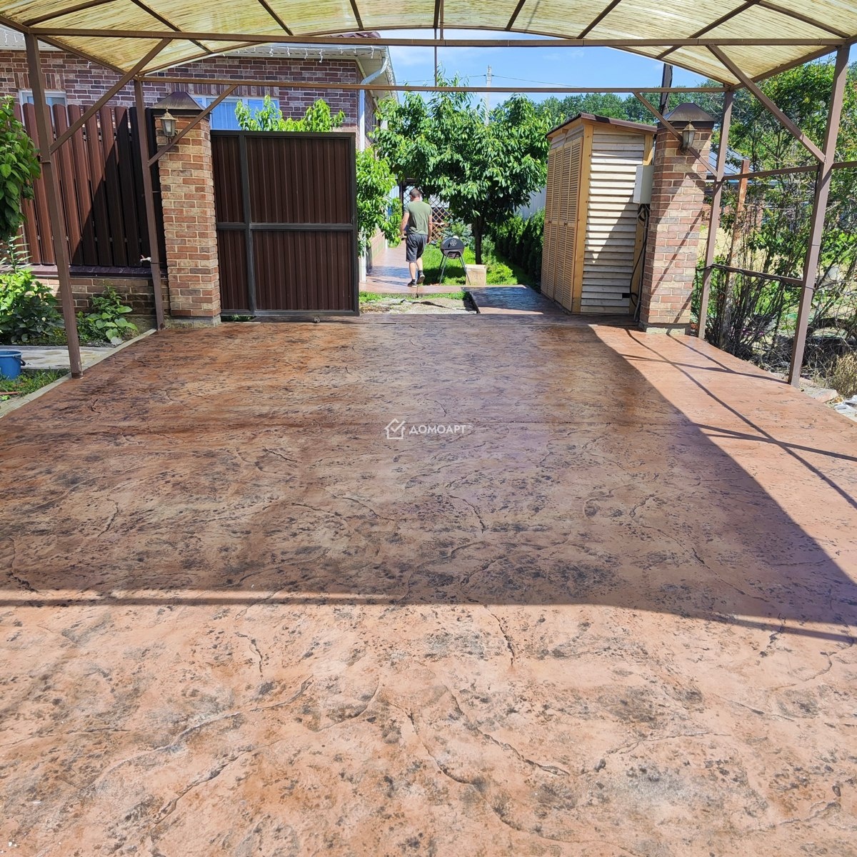 Отштамповали ✔️ в Нижнем Казачьем хуторе 🔥 Сделали для замечательной заказчицы Марины «под ключ» двор из печатного бетона в Нижнем Казачьем хуторе. Выполнены площадки, парковочное место под автомобиль, отмостка. Общая площадь двора 1️⃣4️⃣4️⃣,5️⃣ м². Использован штамп 🧩 «Старый гранит» в цвете «RAL 8017 Chocolate brown», разделитель «Graphite Black» Дизайнер: Захарова А.С. Прораб: Немцев В.А. Бригадир: Линев Ю.И. Материалы: @alfamix.ru ДомоАрт® — современные декоративные покрытия 💎 премиум класса для вашего дома и двора. Команда 👷🏻♂️👷🏿♂️👷🏽♂️лучших профи страны сделает для Вас индивидуальное 🗿 произведение бетонного искусства! #ПечатныйБетон #Благоустройство #ШтампованныйБетон #БетонированиеДвора #БетонированиеОтмостки #БетонировниеПарковки #БетонированиеДорожек #ПечатныйБетонКраснодар #ДекоративныйБетон #ДомоАрт