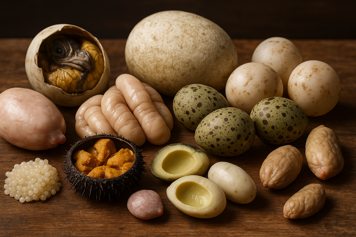 Кулинария без границ: узнайте, какие необычные яйца и органы животных попадают на стол гурманов по всему миру. Мировая гастрономия часто заходит туда, где многие даже не подозревают наличие пищи. Одни культуры делают деликатесы из того, что другие считают отбросами. Сегодня речь пойдёт о съедобных яйцах и репродуктивных органах животных — не о привычных куриных или перепелиных, а о тех, что вызывают удивление, восхищение или отвращение. Мы собрали самые необычные и малоизвестные продукты с пояснением, где и как их едят.