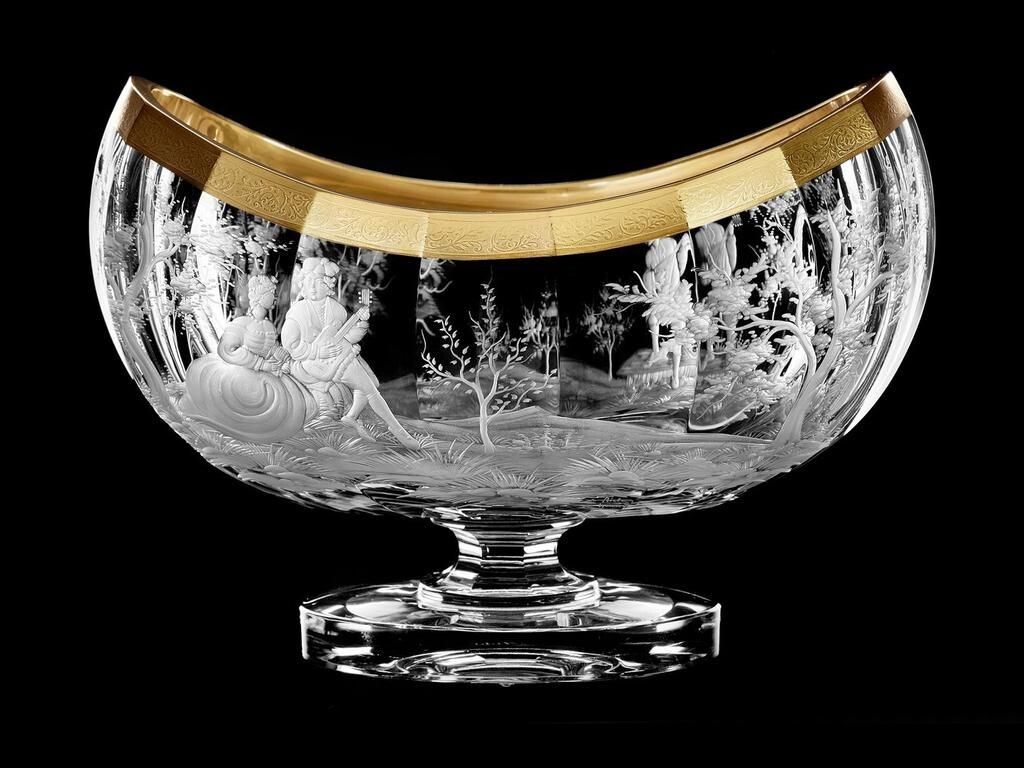 Ваза-чаша овальная "Музыканты" Aida (Аида) Ручная работа. Ваза-чаша овальная "Музыканты" Ручная работаШирина 32 см. Высота 18,5 см.Фирма Aida (Аида) продолжает традиции национального чешского стекольного производства и относится к лучшим мировым производителям художественного стекла.Издавна Чехия славится своим хрусталем. Еще четыре сотни лет назад в Богемии зародилось производство посуды из стекла. Сперва, для ее изготовления использовалось так называемое венецианское стекло, но оно не обладало достаточной прочностью. Настоящий хрусталь Чехия начала производить в XVII веке, когда в стекло научились добавлять оксид свинца, что дало просто ошеломительный результат. Чешский хрусталь обладает наилучшей прозрачностью и большей прочностью, которая позволяет мастерам делать искусную резьбу. Только изделия высочайшего качества покидают стены фабрики.https://youtu.be/IJTrtlN2gug Столовые приборы, Стоимость лота: 210 000,00 ₽ Подробнее…