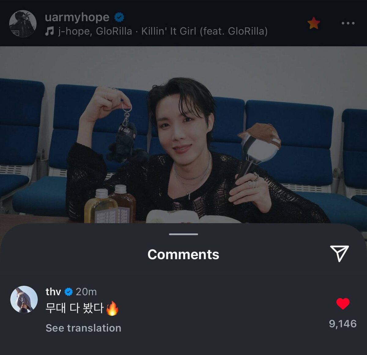 🍊 Тэхён прокомментировал пост Хоби в Instagram: