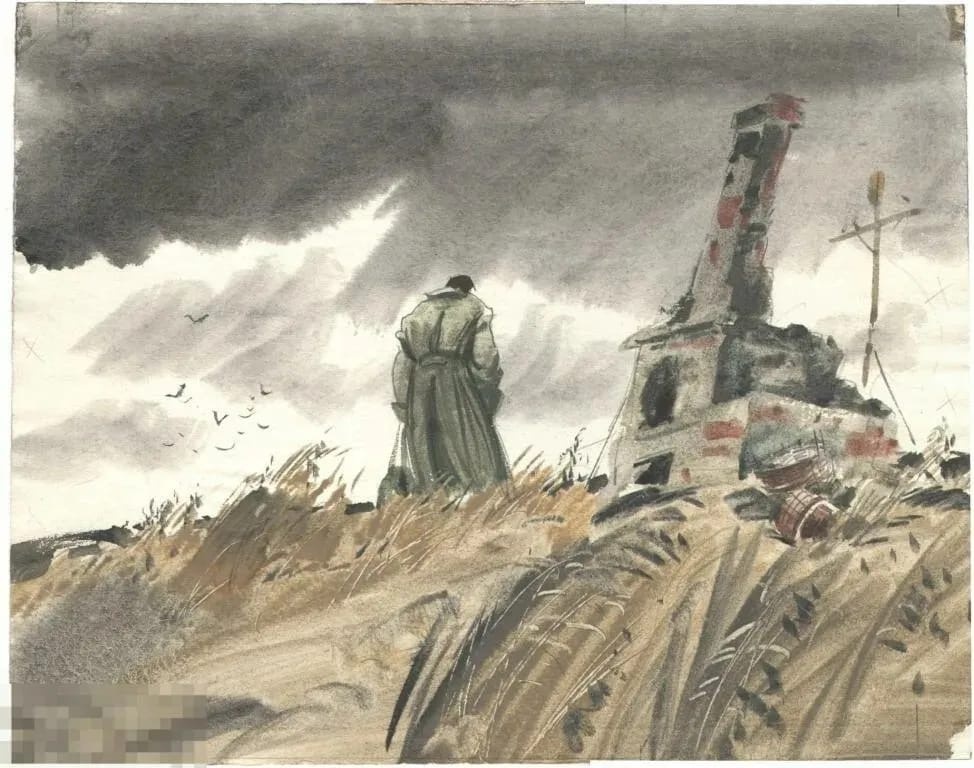Иван стоял на возвышенности и с трепетом смотрел вдаль на свое село. От счастья, что выжил после страшного ранения и возвращается домой, солдат то плакал то смеялся. Чувства радости, волнения, переживания его вымотали, он присел на землю, снял сапоги, размотал вонючие портянки и тихим голосом сказал: