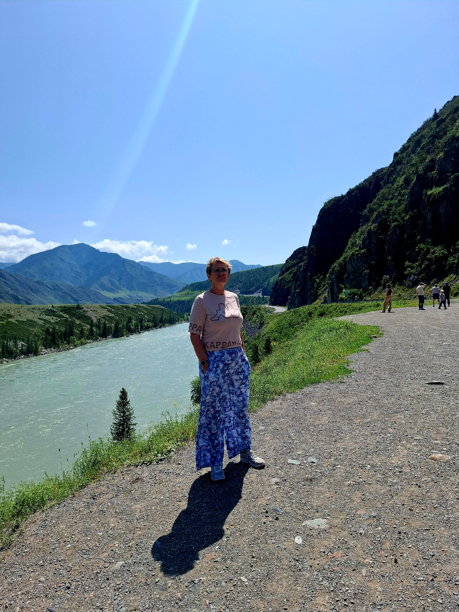 Мы долго катились вдоль этой реки, просто потому что встать было негде. Прямо, как у нас, в Качугском районе. С одной стороны горы к небу, с другой стороны река Лена. Между ними хватило места только для того, чтобы проложить дорогу на две полосы. Вот и здесь, горы, но ещё отвеснее и каменистее, чем у нас, и Катунь, изумительно цвета, и посередине мы, песчинка во вселенной, которая на фоне гор и рек, вообще не заметна, даже если учесть, что эта песчинка обладает интеллектом. И мы,катились в ограниченном пространстве и мечтали скатится на обочину, и рассмотреть это чудо природы поближе. Ведь это действительно чудо?