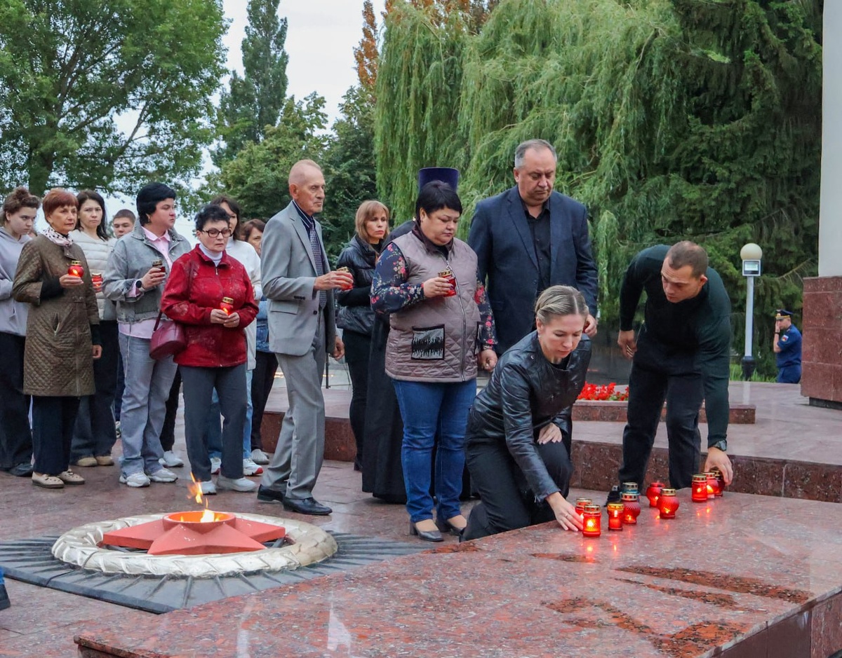 В рамках Всероссийской акции «Свеча памяти» участники возложили цветы и зажгли свечи у мемориального комплекса на Площади Славы, почтили память погибших воинов минутой молчания.