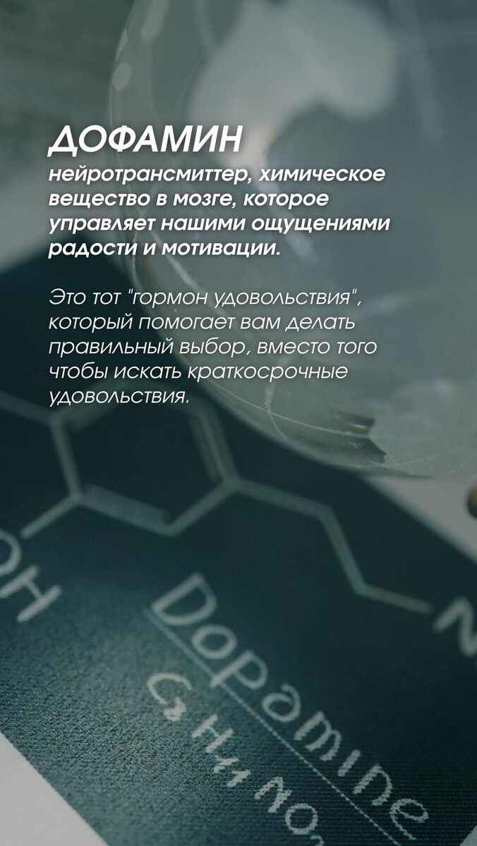Представьте, что в вашей голове есть внутренний дирижёр. Он указывает, когда вам радоваться, когда стремиться вперёд, а когда — просто лежать и ничего не хотеть. Его имя — дофамин. Сегодня мы заглянем в глубины вашего мозга и разберёмся, как работает дофаминовая система, почему она управляет нашей жизнью намного больше, чем нам кажется, и что можно сделать, чтобы «включить» дофамин осознанно — без сладкого, соцсетей и серотониновых таблеток. Дофамин — это нейромедиатор. То есть химическое вещество, которое передаёт сигналы между нейронами. Но он не просто «передаёт». Он — ключ к мотивации, целям, желаниям и ощущению вознаграждения. Вот простой пример. Вспомните, как приятно зачеркивать выполненный пункт в списке дел. Это дофамин. Вспомните азарт, когда вы начали новую книгу, сериал или проект. Это он. И да, тот же дофамин заставляет нас снова и снова листать ленту TikTok или Instagram в поисках следующего «кайфа». Но об этом чуть позже. Представьте себе путь: стимул → ожидание → дейст