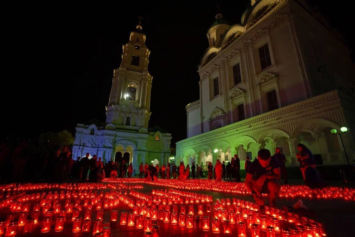 Сегодня астраханцы отдают дань памяти тем, кто 84 года назад встал на защиту Родины День памяти и скорби начался в 4 часа утра с митинга в Братском саду у Вечного огня. У мемориала зажгли лампады в рамках всероссийской акции «Свеча памяти». Также более, чем из 3500 свечей выложили изображение солдат, отправляющихся на фронт от кремлевской колокольни. В сквере филармонии Камерный оркестр исполнил для астраханцев тематические произведения классиков и современных композиторов. Концерт сопровождался показом архивных фото и видеохроники военных лет. В конце мероприятия слушатели замерли в минуте молчания. Утром были возложены венки и цветы к памятнику погибшим кораблям, памятнику Героям Советского Союза, стеле «Астрахань – город трудовой доблести», мемориалу «Часовые памяти» и обелиску на Старом кладбище. #МыПомним