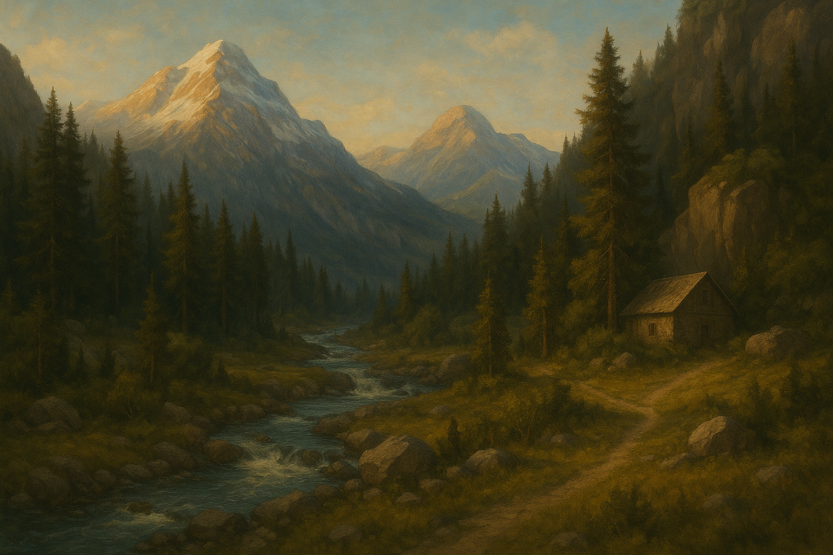 Мы вышли наружу. Местность вокруг была словно из другого мира — дикая и в то же время наполненная мудростью. Горы, леса, кристальные реки, водопады, озёра — всё дышало древней силой. Хижина Элиаса пряталась среди скал, будто была продолжением природы.