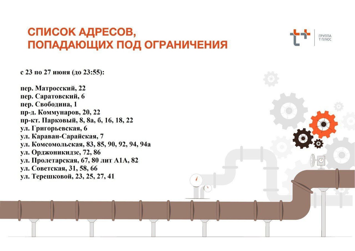 Адреса, где из-за опрессовок будет отключена горячая вода на карточках
