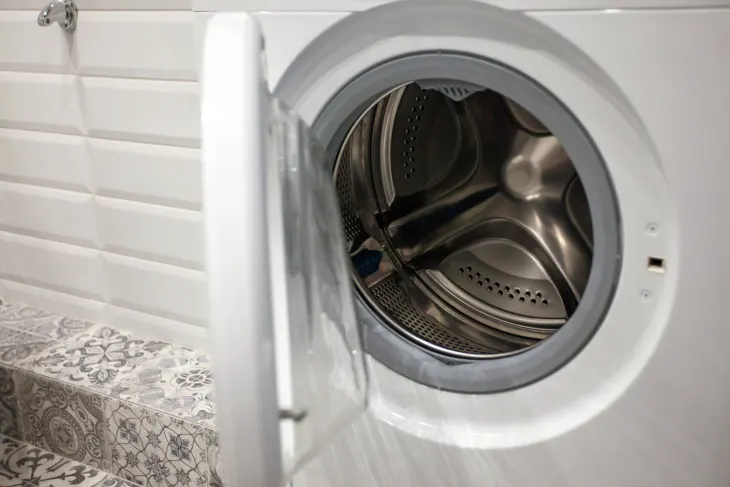 - Риск повреждения. Открытая дверца — это всегда риск, что ее заденут, случайно захлопнут или повредят. Особенно это актуально для небольших квартир, где стиральная машина стоит в проходной зоне.