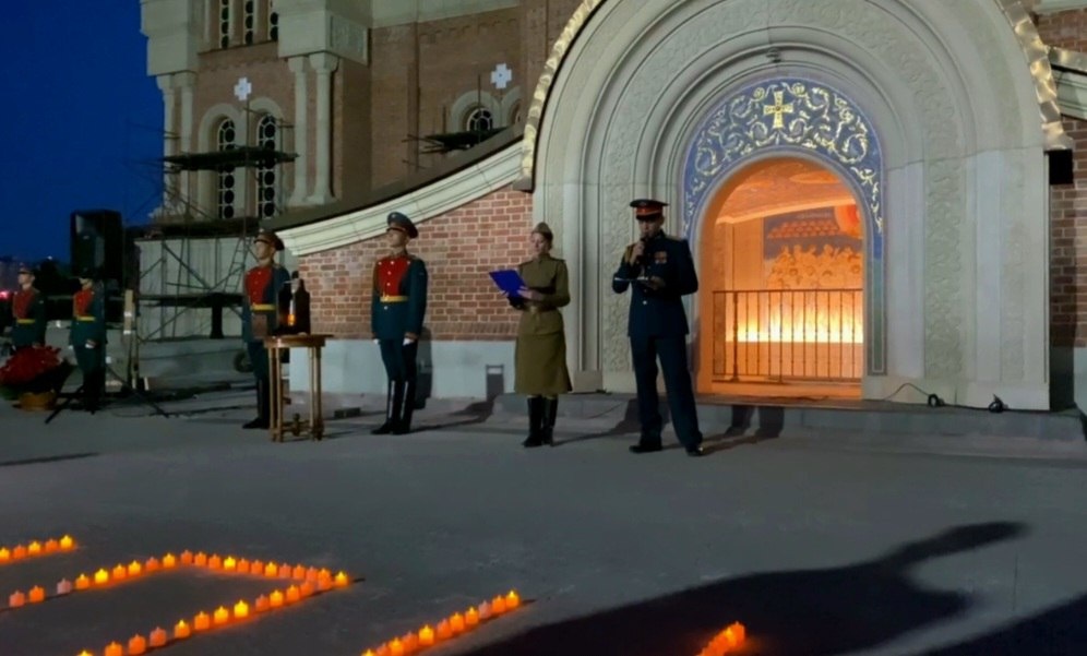 📷 День памяти и скорби. Россия вспоминает жертв фашистской агрессии Накануне Дня памяти и скорби на Дону прошла ежегодная акция «Огненные картины войны». «Мероприятие сопровождалось выступлением ансамбля «Успех» ЮВО, исполнившего музыкальные композиции военных лет», — пишет Ростовское региональное патриотическое общественное движение «Дороги славы — наша история». Заслуженная артистка Дагестана и Ингушетии Ася Компаниец прочла «Реквием» Роберта Рождественского. У храма Святого Великомученика Георгия двести военнослужащих выстроились в цифру 1418 — столько дней шла война. Около входа в храм свечами выложили слово «Помним». В Геническе тысячи свечей зажглись в форме парашюта. «Активисты создали изображение парашюта как символ воздушно-десантных войск. В память об «отце ВДВ» — Василии Маргелове, принимавшем участие в освобождении Херсона от фашистских захватчиков в 1944-м году», — пишет администрация Херсонской области. Полторы тысячи волгоградцев возложили цветы к Вечному огню у м