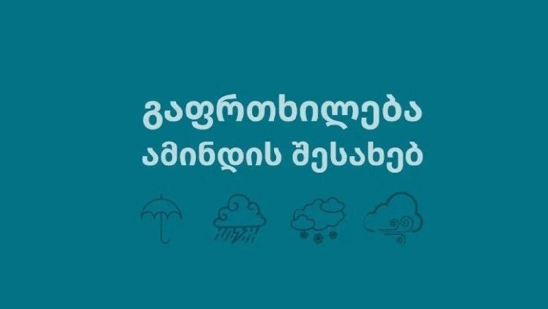 Погода ухудшится с позднего вечера 22 июня до полудня 23 июня — предупреждение Национальное агентство по охране окружающей среды предупреждает: в восточных районах Восточной Грузии ожидаются сильные кратковременные дожди, грозы и усиление западного ветра. Непогода может вызвать внезапные паводки на малых реках, а также спровоцировать или усилить оползни и сели в холмистых и горных районах. Уровень опасности — средний.