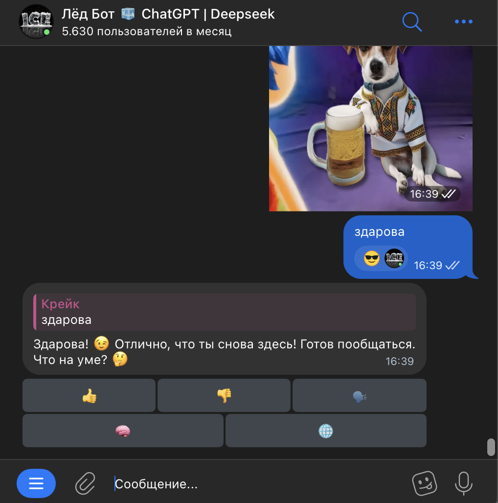 Так появился мой бот — @IceFloeBot бот который отвечает на вопросы с помощью языковой модели Я написал про него 2 статьи: И знаете что? Сейчас, если вы в Яндексе напишете "телеграм боты", мой бот на первом месте.