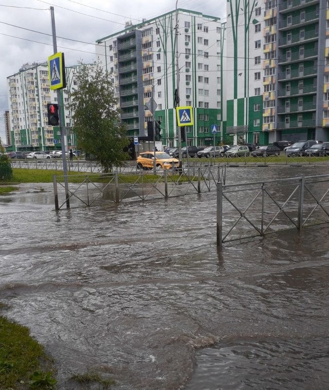 22 июня после обильного дождя в Твери вновь можно наблюдать пруды на ряде улиц. К примеру, совершенно затоплен оказался перекресток улиц Оснабрюкской и Дружинной в Мамулино. Также очевидцы сообщили, что под водой скрылся асфальт на кольце в микрорайоне "Южный". Это далеко не полный перечень мест в городе, где ливневки не работают (или просто отсутствуют), и на улицах образуются запруды. Добавим, что, согласно данным Гидрометцентра, в Твери за последние три дня выпало около 70% месячной нормы осадков. На следующей недели также прогнозируются дожди. ✏️ «КП»-Тверь» | Подписывайтесь