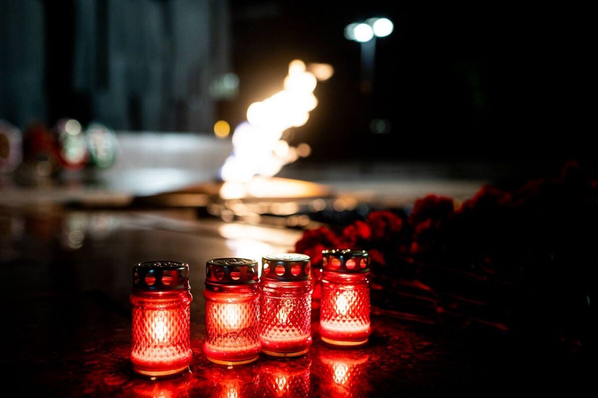 В ночь с 21 на 22 июня на Площади Победы состоялись международные акции «Огненные картины войны» и «Свеча памяти». В День памяти и скорби участники акции — волонтёры, жители города и представители власти — почтили память погибших. Об этом сообщили в пресс-службе правительства Воронежской области. Десять тысяч свечей были собраны в масштабную композицию — Памятник Славы, который стал частью всероссийской акции памяти. С 2020 года ежегодные акции объединяют тысячи людей. Свечи, цветы и огненные фигуры — это не просто символы, это живое напоминание о тех, кто отдал свои жизни за освобождение от фашизма. Напомним, ранее воронежские полицейские почтили память героев Великой Отечественной войны. Участники пришли к мемориалу, держа в руках зажжённые свечи — это знак памяти и признательности. К памятнику принесли венки и цветы, а затем все почтили память погибших минутой молчания.