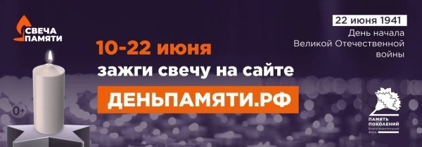 Зажгите свою виртуальную «Свечу памяти»! 22 июня День памяти и скорби. В этот день 84 года назад жизнь почти 200 млн человек разделилась на «до и после» началась Великая Отечественная война. Пока мы помним о ветеранах, их подвиги живы! 22 июня по всему миру зажигаются свечи в ночной тишине в память о всех, кто отдал жизнь во имя Великой Победы. #Учалинскиймузей #Свечапамяти #Деньпамятиискорби Источник https://uchaly102.ru/?p=88469
