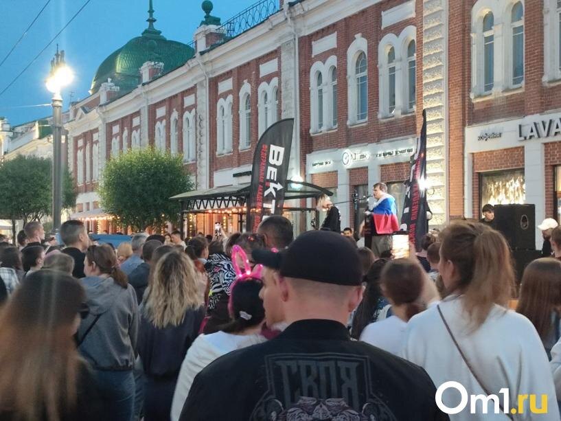 Официальная программа «Пешеходного Любинского» заканчивается в десять вечера. Но никто не расходится. Люди собираются у башни с часами и продолжают слушать хорошую музыку. Чтобы пройти по улице, нужно лавировать между людей. Больше всего здесь молодёжи, но и семей с детьми тоже встречается немало.