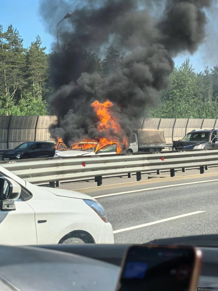 На КАД в районе Ржевки крупное ДТП, движение в направлении от Кудрово стоит мёртво