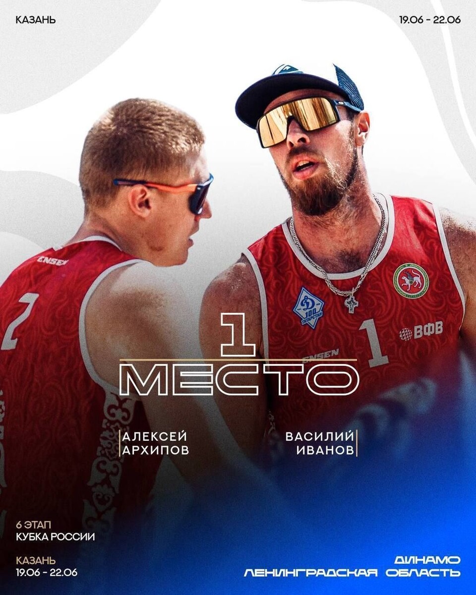 Первые медали сезона завоевал волейбольный клуб «Динамо-ЛО», сообщает пресс-служба администрации Ленинградской области. Спортсмены Василий Иванов и Алексей Архипов взяли золото 6-го этапа чемпионата России по пляжному волейболу. В напряженном финале парни встретились с соперниками из Петербурга – Никитой Эвертом и Александром Мартыненко. Ленинградцы выиграли со счетом 2:1. Тренирует волейболистов Дмитрий Барсук. Ранее сообщалось, что ленинградские волейболисты выиграли билет на первенство России. Соревнования прошли в Великом Новгороде.