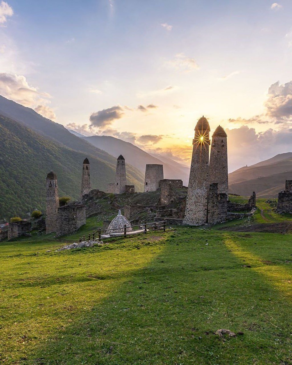 🏛 Добрый вечер, друзья На фото не просто старьё, а боевой комплекс - боевые башни "Эрзи" в Ингушетии Они состоят из 8 боевых и 2 полубоевых башен. Они охраняли 47 жилых каменных башен. Так и жили наши предки 🏹 Боевые башни высотой до 30 метров имеют квадратное основание и обычно пять этажей. 🗿 В одной из них нашли бронзовую фигуру орла VIII века — «Орёл Сулеймана». 🗺Координаты 42.803477, 44.759501 📷 vika_sun_sea ⛏ Юг Край