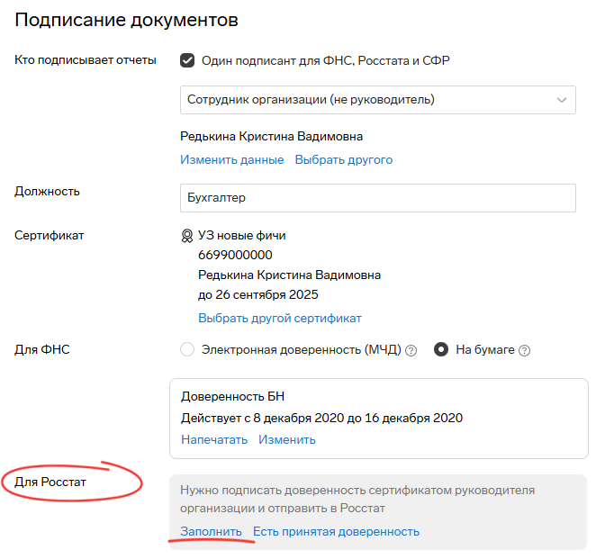 Важное изменение: с 1 мая Федеральная служба государственной статистики (Росстат) внедрила новый порядок приема отчетности. Теперь для отправки отчетов требуется использование машиночитаемой доверенности (МЧД). Бумажные доверенности сохранят свою актуальность только для отправки писем в территориальные органы государственной статистики (ТОГС). Пошаговая инструкция по регистрации МЧД в системе Контур.Экстерн: Важно: если у вас отсутствует действующий тариф в Контур.Экстерне, воспользуйтесь альтернативным сервисом Контур.Доверенность для оформления МЧД. Категории пользователей, которым необходимо оформить МЧД: Дополнительную информацию о требованиях и порядке оформления можно найти на официальном сайте Росстата.