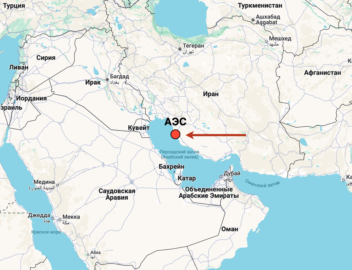 Просто всё это – страны Персидского залива, т.е. мировые "бензоколонки". Да и сам Персидский залив вот он – обжимает Бушерскую АЭС.