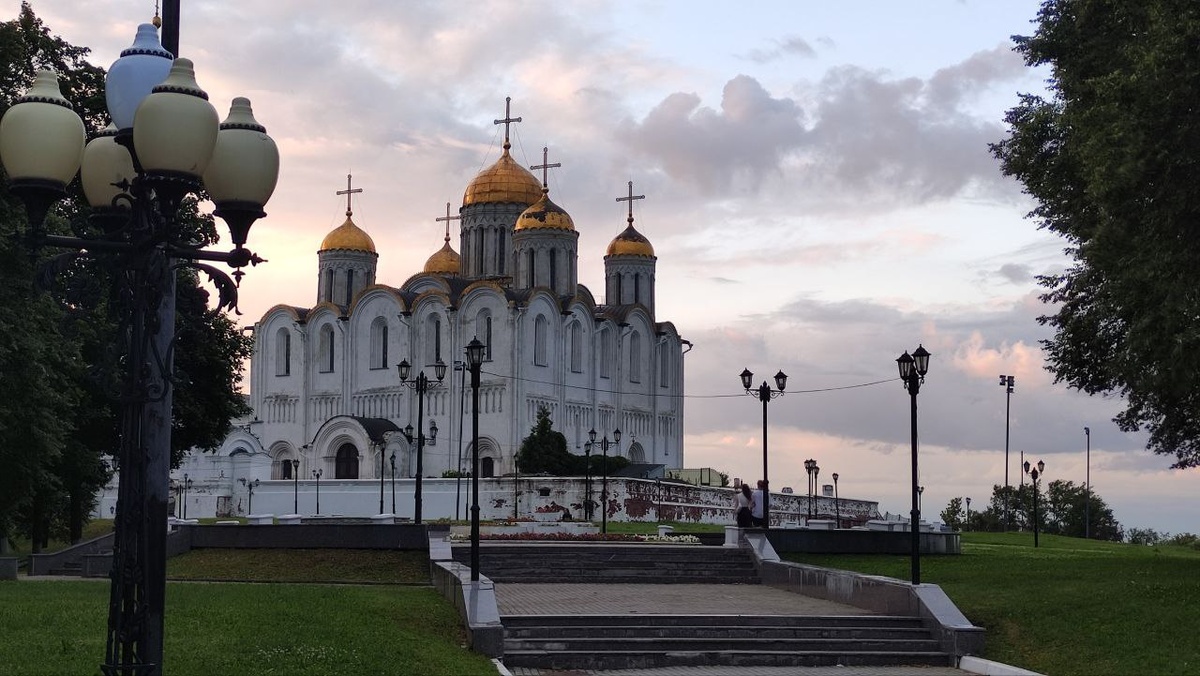 Собор Успения Богородицы. Владимир. 12 век. Детище кн. Андрея Боголюбского. До возвышения Москвы именно в нем благославлялись на царство Великие Князья. По высоте превосходит Новгородский, хотя наш древнее на целый век. Тут наиболее полно сохранились подлинные фрески Андрея Рублева. Чудо русского зодчества