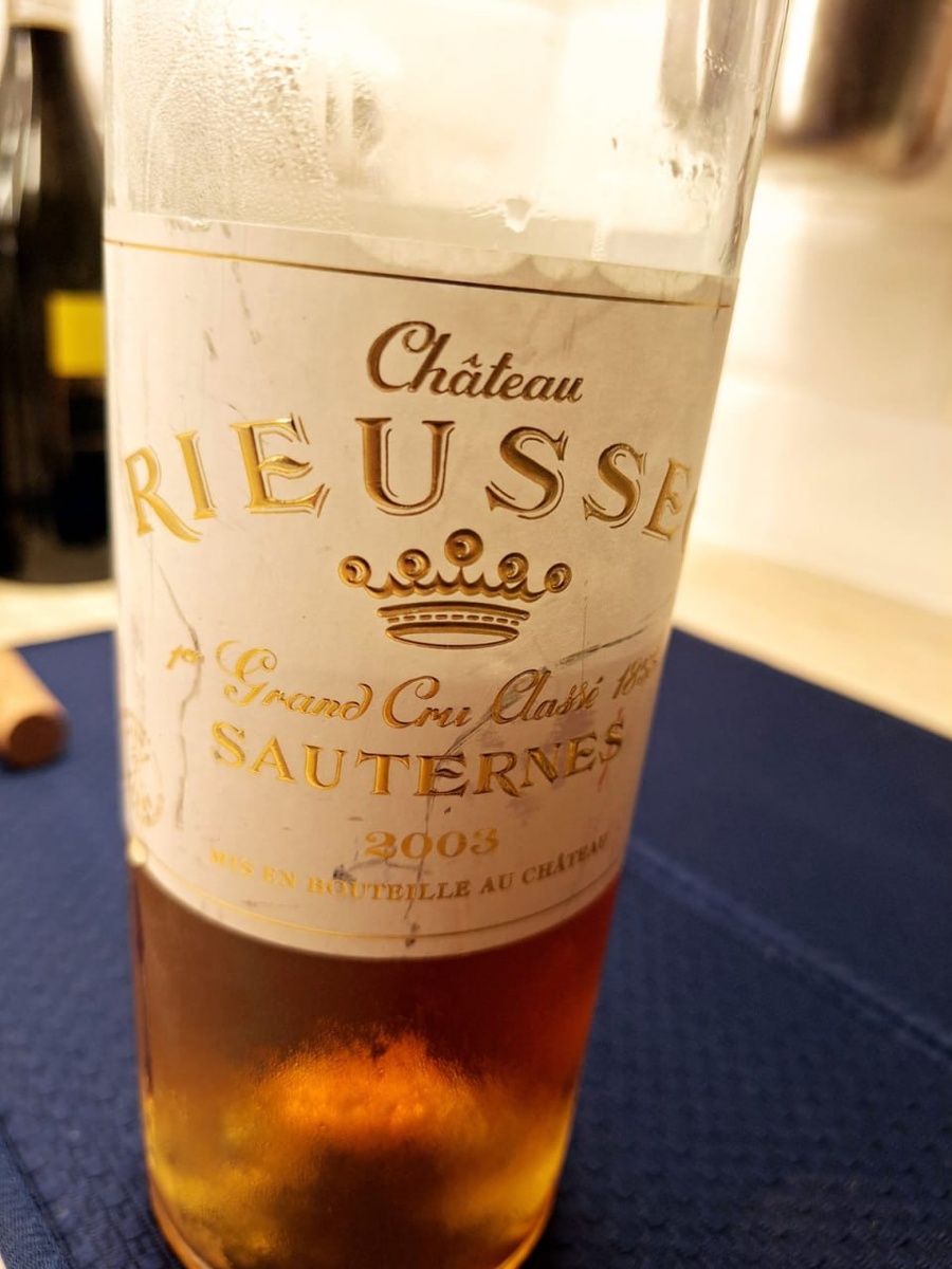 Château Rieussec - Sauternes (Premier Grand Cru Classé) 2003 Сегодня у нас скорее даже не про напиток, а про мощнейшее гастрономическое впечатление! Заседали мы с другом моим Дмитрием Мережко у него, выпивали вина, пробовали разные сыры. И среди всего прочего принес я в подарок голову нашего экспериментального сыра с голубой плесенью. Сделан этот сыр был по рецептуре французской классики - блё де Овернь. Сварен сыр был 7 марта этого года и последующие 3 месяца он не покидал камеры созревания на сыроварне. Это тот сыр, который нельзя купить в магазине в принципе, поскольку он до состояния полной зрелости не покидал холодильник, его никто не разрезал и он спокойно зрел целой головой, у него живая корка. Внутри он стал уже кремового цвета, весь наполнен голубой плесенью. Мощный, интенсивный, с остринкой во вкусе и нотами умами, весьма соленый. Он настолько насыщенный, что может перебить собой любые вкусы. Поэтому когда Дима спросил - Что взять под него? Я предложил шардоне Макон Вилляж.
