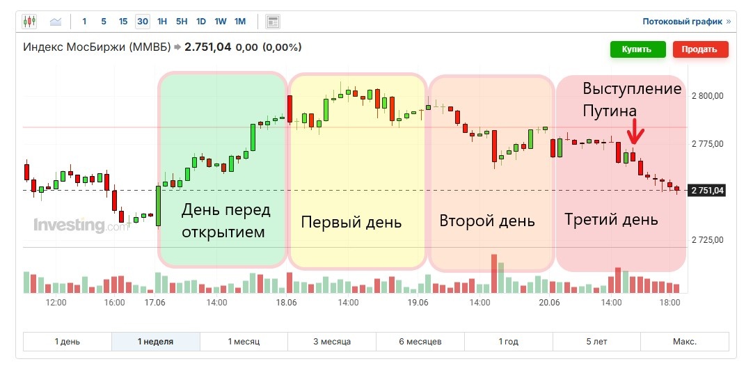 На этот раз во время ПМЭФ рынок падал, вопреки традициям, особенно после выступления Путина. Далее неделя начнется ростом из-за нефти