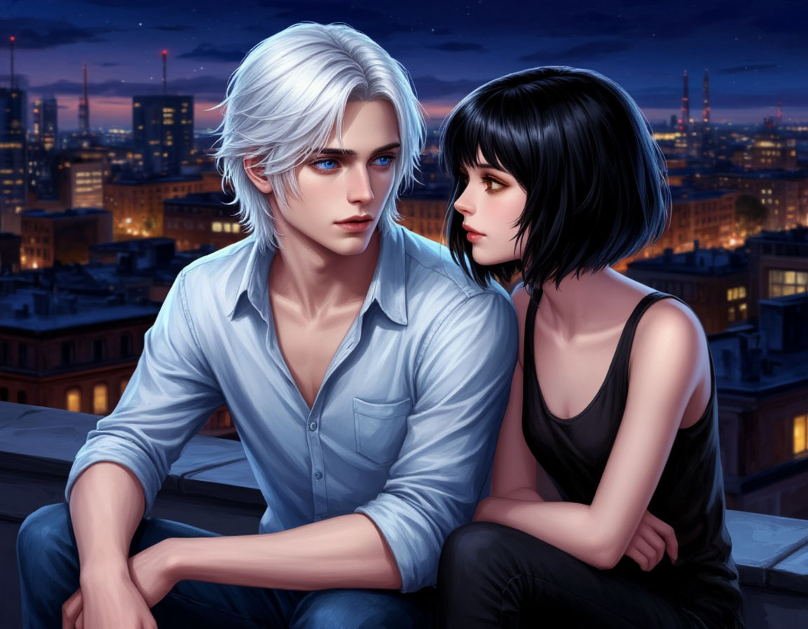 Она посмотрела на юношу. Его лицо было обращено к городу. Красивый точёный профиль выделялся на фоне далёких огней. Белые волосы беспорядочно движущимся вихрем обрамляли лицо. Как обычно, он казался совершенно бесстрастным – прекрасная бесчувственная статуя.