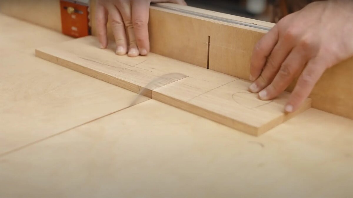 Поскольку настройка «ровно 45°» не всегда точна, этот свежий пропил покажет реальную линию реза, что значительно упростит позиционирование заготовки.