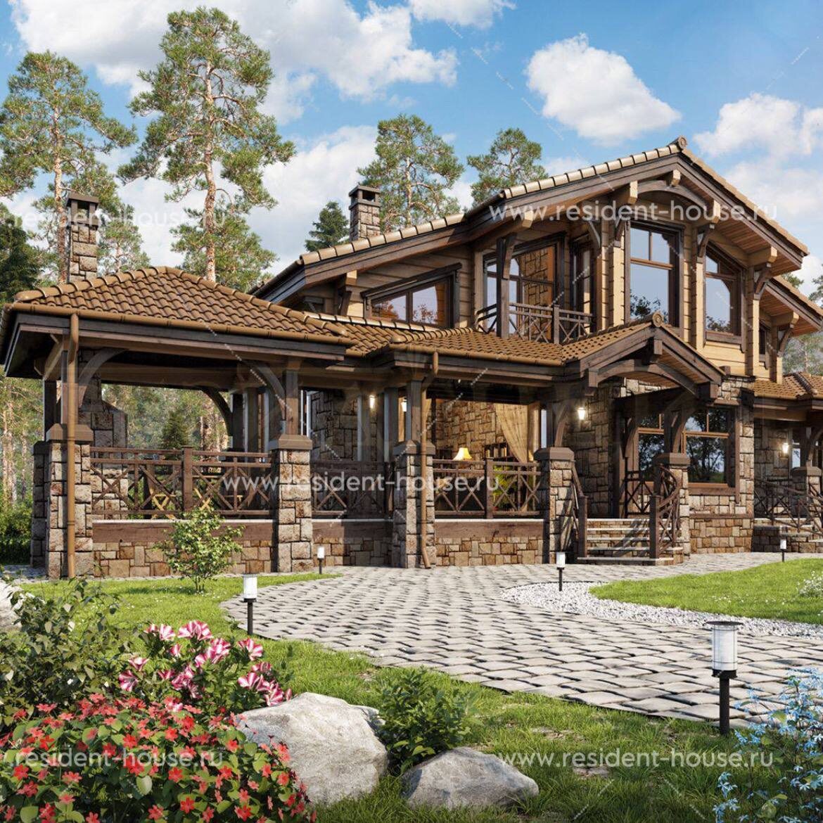 Альпийский стиль: когда роскошь прячется за скромным фасадом Представьте дом, который выглядит как уютное шале, спрятанное среди горных склонов, но внутри — это просторные интерьеры с камином, панорамными окнами и натуральными материалами. Это не просто «домик в деревне», а продуманная до мелочей архитектура, где каждая деталь работает на комфорт и эстетику. Как появился альпийский стиль? Изначально шале строили пастухи в Савойе (Франция) и Швейцарии — это были простые, но крепкие дома с покатой крышей, чтобы снег не скапливался. Но в XIX веке европейская аристократия, уставшая от помпезности классицизма, открыла для себя очарование горных домиков. Так скромные пастушьи жилища превратились в элитные резиденции. Особенности, которые делают альпийский стиль уникальным: ⚜️ Двухслойные фасады – внешняя обшивка из лиственницы или кедра (не гниет!), а внутри — современные утеплители и инженерные системы. ⚜️ Крыша с «ушками» – широкие свесы защищают от снега и дождя, создавая терр