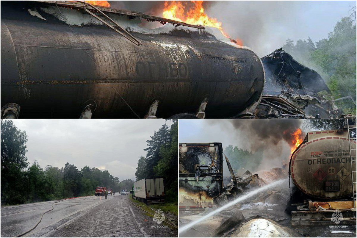 Серьёзное ДТП с участием трёх грузовиков, включая бензовоз, произошло 22 июня на 1652-м километре федеральной трассы М-5 «Урал» в Катав-Ивановском округе. По предварительным данным, погиб один человек, ещё одного доставили в больницу, сообщили в пресс-службе ГУ МЧС по Челябинской области. В результате столкновения произошёл розлив топлива и последующее возгорание двух автомобилей.