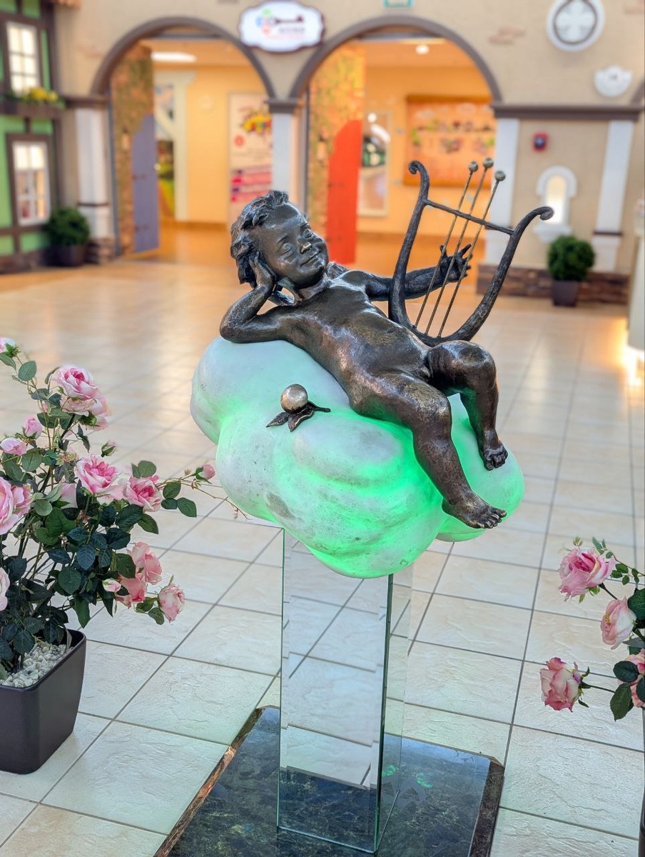 Когда руки влюбленных прикасаются к золотому Амуру, невидимая энергия образует волшебную силу, приносящую молодым парам Радость продолжения Жизни.