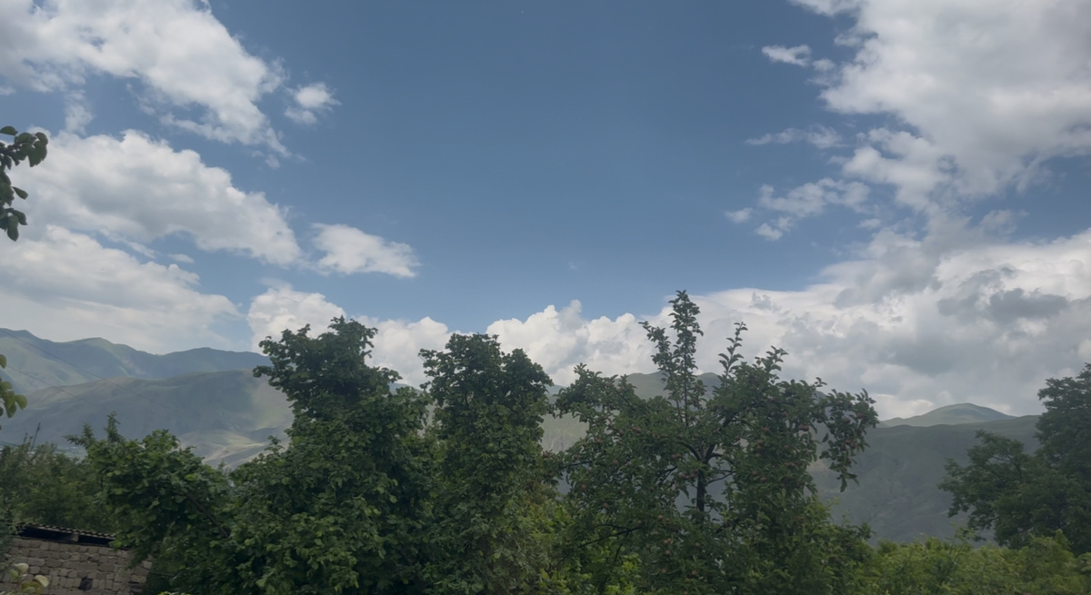 Сегодня природа решила удивить нас нестандартным дождём. Выглядит так, будто кто-то разлил на небо краски! 🌈 Кто знает, какие ещё сюрпризы готовит нам этот день? В июне, когда солнце ярко светило и грело землю, вдруг небо нахмурилось. Тучи закрыли его, оставив лишь небольшие просветы голубого цвета. Но это не помешало дождю пролиться, словно из огромного ведра. Он лил так сильно, что казалось, будто никогда раньше такого не было. И вот, когда дождь закончился, а тучи рассеялись, всё вокруг засияло ещё сильнее. Это был день, когда природа показала своё волшебство, и все, кто видел это, не могли не улыбнуться. Зелень вокруг, как будто почувствовав это волшебство, засияла ярче. Трава и листья деревьев приобрели насыщенный салатовый цвет, словно они были покрыты драгоценными камнями. Каждый листок блестел на солнце, словно зеркало, отражая яркие лучи. На возвышенности, где изумрудный травяной покров тянется до самого горизонта, туман, словно невесомая дымка, окутывает холм, создавая