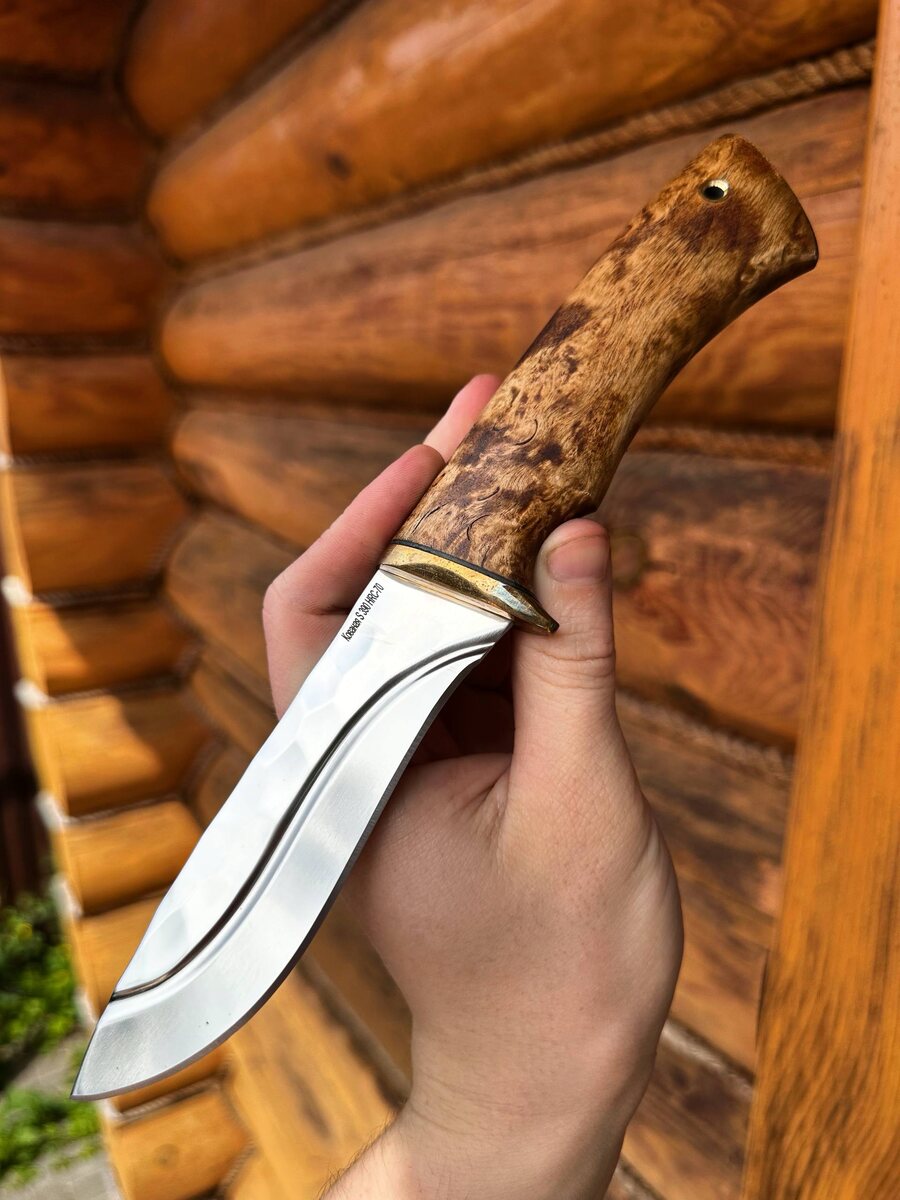 Еще один нож «Кречет» из топовой стали S390 в камень и долом на клинке с крио