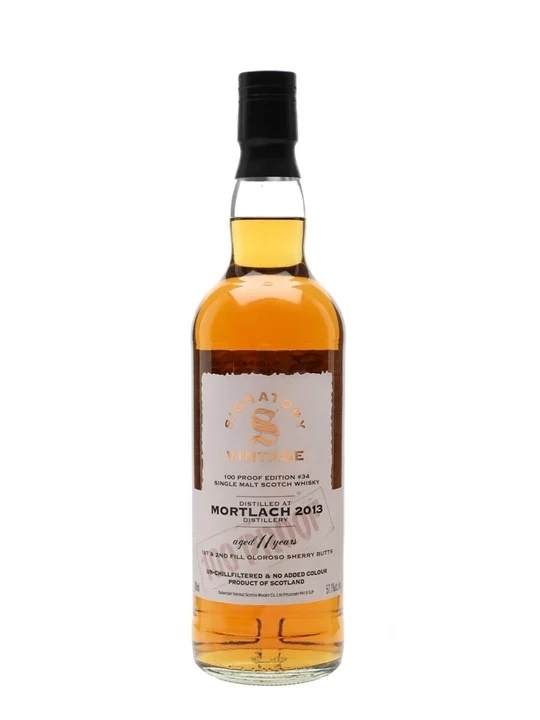 Приветствую всех любителей интересных алкогольных напитков на своем канале! Сегодня на дегустации виски от независимого боттлера Signatory Vintage, который входит в топ-3 независимых боттлеров Шотландии и владеет самой маленькой дистиллерии Шотландии - Edradour. У данного боттлера огромное множество различных винтажей, серий, и они охватывают множество дистиллерий. Серия 100 proof разливается при крепости 57,1% алкоголя. Данный релиз представляет дистиллерию Mortlach. Я все еще не могу добраться до этого виски. Базовые 12 и 16 пропали с полок магазина и остались так и не опробованы мной. Поэтому решил попробовать хотя бы этот релиз. Сразу скажу про цену, для 11 лет и такой крепости ценник, в районе 50 евро в Европе, вызывает конечно же удивление и шок. Виски выдерживался в бочках из-под хереса Олоросо первого и второго заполнения. Судя по цвету и первому носу, бочек первого заполнения практически кот наплакал. Дегустировал я этот виски 2 раза, в первый раз был откровенно расстроен, чер