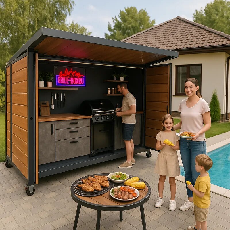 ✅ Создано для идеального сочетания комфорта и удовольствия от процесса приготовления любимых блюд вместе с семьёй и друзьями круглый год Желаете оригинальное решение, подходящее именно вам? Напишите нам в WhatsApp или оставьте комментарий ниже — мы воплотим вашу мечту в реальность! Заходите на сайт grill-box.ru: выбирайте понравившийся набор оборудования и начинайте получать удовольствие от приготовления пищи на улице уже сегодня! Получить консультацию легко: звоните по номеру +7 (495) 220-02-96 или воспользуйтесь нашим чатом в WhatsApp (+7 985 220-02-96). Модульная конструкция Гриль-Бокс подарит незабываемые момен