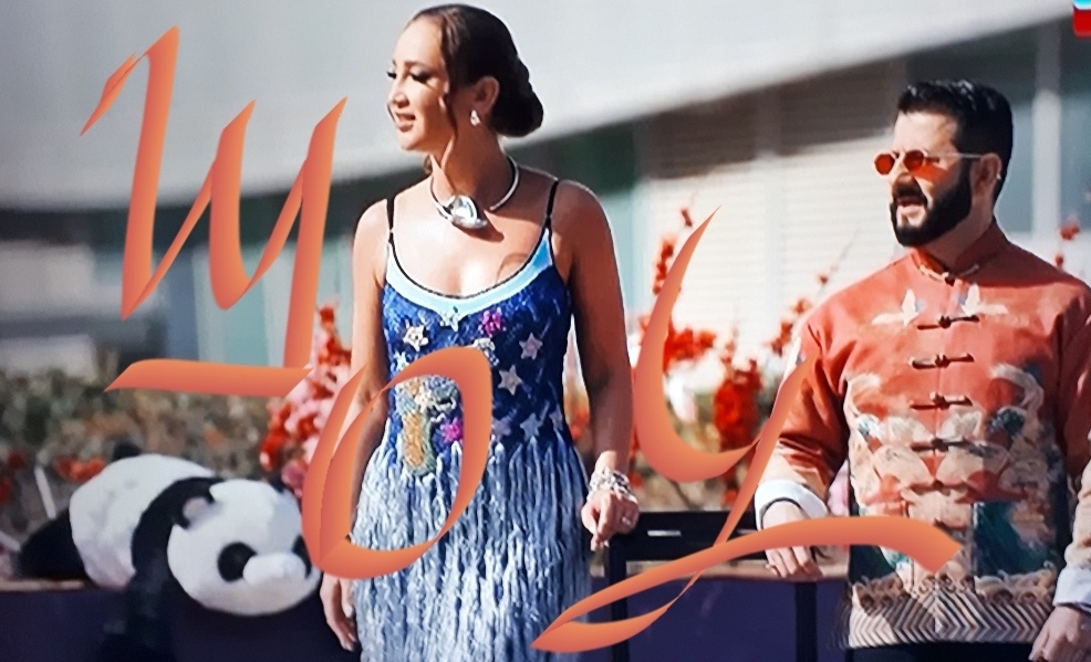 Представляете? Олимпийская чемпионка смогла сыграть мелодию, а Нюша нет. У синих, что пришли вторыми, играть начал Юра, снова жених выручает неумеху невесту, которая мало что умеет в жизни. Зачем ему такая жена? Очень не повезло зелёным! Они выбрали воздух, а там сложный инструмент Шен. На неём сложнее играть потому что колокольчики видно, они перед глазами висят.