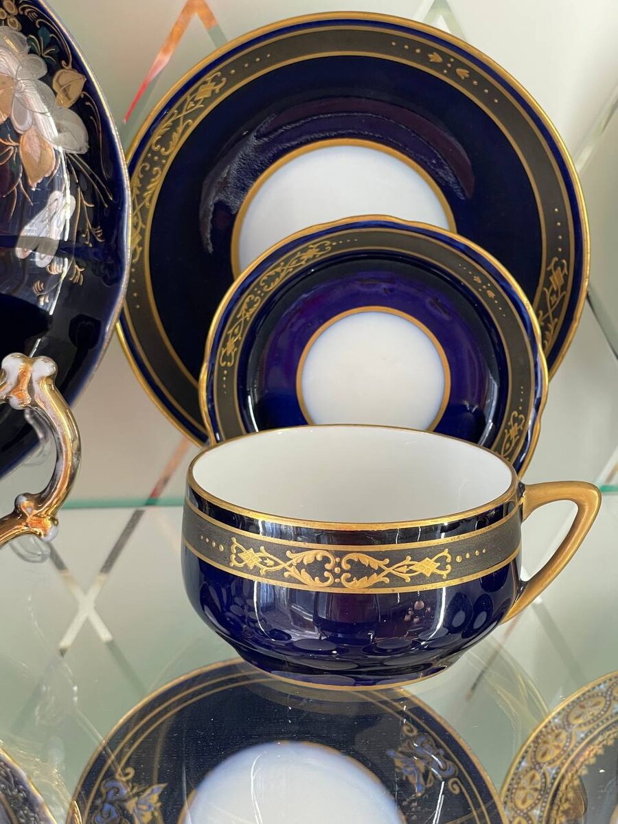 Далее кобальт с золотом и серебром. Иногда можно услышать от людей, которые далеки от фарфоровой темы: что это за странный серый цвет? Оказывается это серебрение. Рисунок, нанесенный такими красками менее устойчивый, чем золочение. А темнеет серебро очень быстро.