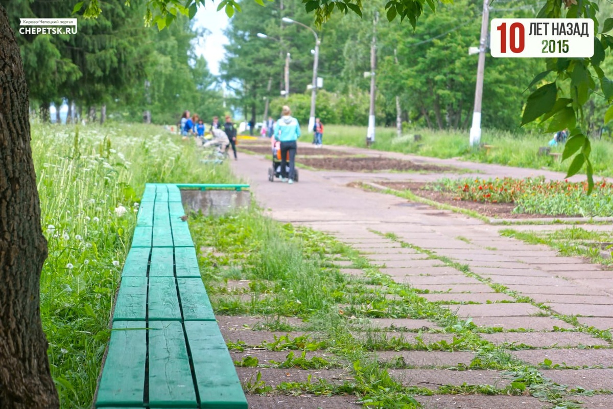 • История пишется быстро: Чепецк 10 лет назад • Из всех общественных пространств, спортивных и игровых зон, сделанных в последние годы, сквер на улице Первомайской оказался самым надёжным и удачным решением. Правильное проектирование и понимание модели использования территории спасло его от проблем. В отличие от парка «Южный» не все просчёты которого исправлены. На фотографии — напоминание о том, как выглядела аллея до реновации: разбитый асфальт, бедные клумбы, старые скамейки и бурьян на газонах.