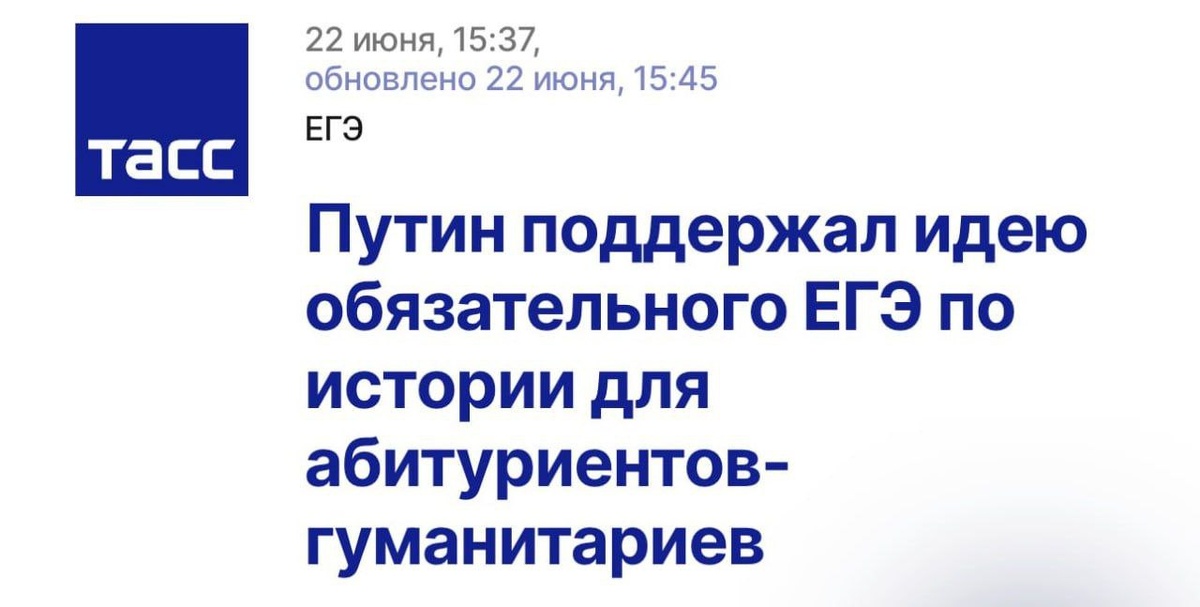 ЕГЭ по истории могут сделать обязательным для всех абитуриентов — инициативу поддержал президент. Сначала нововведение коснётся гуманитарных и социально-экономических направлений. Если эксперимент окажется успешным, экзамен распространят и на технические специальности. Как вы относитесь к этой инициативе? #ЕГЭ #образование #поступление_2025