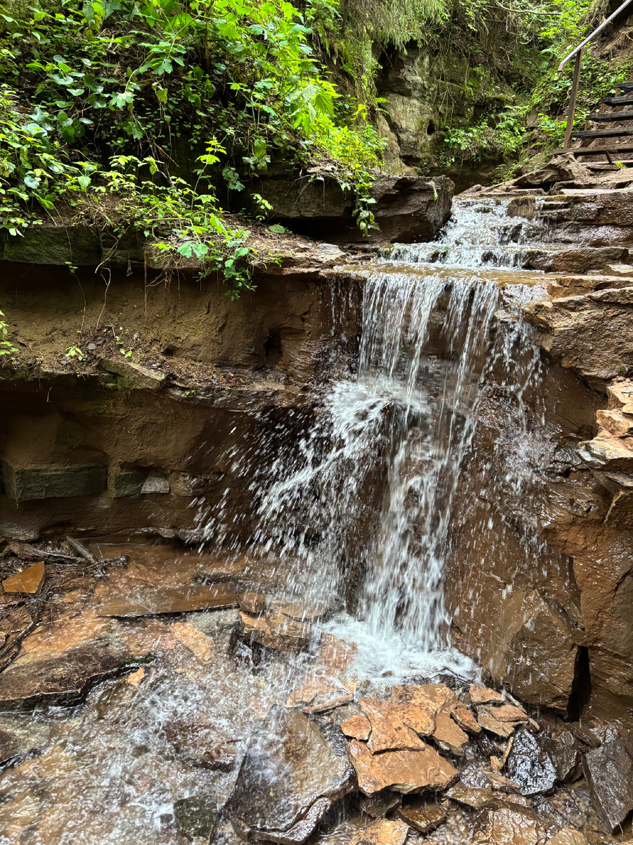 Спускаясь по крутому склону, чувствуешь, как меняется мир вокруг. Лес словно расступается, пропуская в свой сокровенный уголок. Влажный воздух наполнен ароматом мха и прелой листвы.
