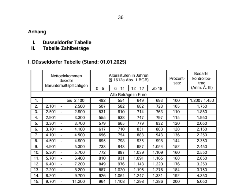 Хочу поговорить на эту тему. Тема не простая и задевает много семей в любой стране мира. Алиментов я не платил, что это такое и как это отражается на семейном бюджете я знаю только со слов друзей и знакомых. Хочу рассказать, как в Германии это всё происходит, как с кого и сколько. Начну с того, что в Германии алименты получает тот родитель, с которым остаются дети, так что плательщиком алиментов может стать любой человек независимо от пола. Как я знаю в России действует своя схема начисления алиментов 25% на одного ребёнка от суммы зарплаты платящего, если два ребёнка, то 33% и если 3 и более детей, то 50%, если я ошибаюсь, то поправьте пожалуйста. Друг из России, на этой неделе написал мне, что со следующего месяца у него больше не будут высчитывать алименты, так как дочь закончила университет и её 23 года. В Германии система подобная, пока ребёнок учится, то алименты он имеет право получать и 18 лет тут не играет роли. Максимум до какого возраста ребёнок в Германии может претендовать на алименты это 25 лет, дети инвалиды могут претендовать на алименты до 26 лет. Так же и детское пособие, если ребёнок учится, то детское пособие, в этом году оно составляет 255 евро ребёнок может получать до 25 лет. Но каждый год, детское пособие продлевается и нужно по новой заполнять документы на его получение. Сумма детского пособия минусуется из суммы алиментов. В Германии есть Düsseldorfer Tabelle (Таблица сумм выплат) она не является законным основанием для начисления алиментов, но в основном все суды придерживаются этой таблицы при начислении алиментов. Эта таблица каждый год обновляется, и цифры каждый год в этой таблице другие и соответственно каждый год происходит корректировка выплаты алиментов