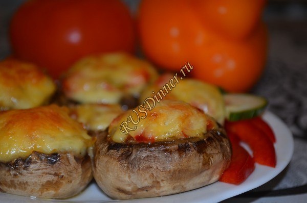 Шампиньоны, фаршированные овощной начинкой От автора: Шампиньоны, фаршированные овощной начинкой получаются довольно сочными, отлично украсят Ваш праздничный стол. Ингредиенты: Грибы шампиньоны - 500 гр. (крупные) Помидоры - 200 гр. Перец болгарский - 200 гр. (красный, зеленый) Майонез - 50 гр. Соль - 5 гр. Перец черный молотый - 5 гр. Сыр - 150 гр. Лук репчатый - 2 шт. Масло сливочное - 50 гр. Источник: https://rusdinner.ru/page/shampinony-farshirovannye-ovoshhnoj-nachinkoj
