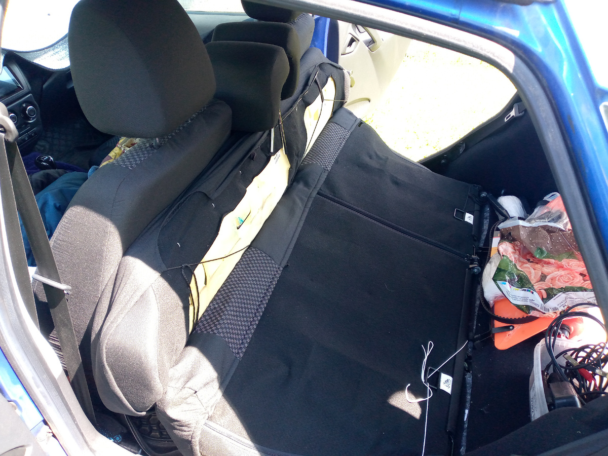 Итак, снимаем подголовники, отбрасываем вперед "седушку" заднего сидения вперед.